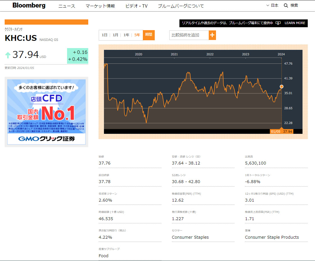 クラフト・ハインツ(KHC)の利回りは米国株としては高配当というほどでもないですが業種を分散できるし、何より知ってる(聞いたことがある)企業なので