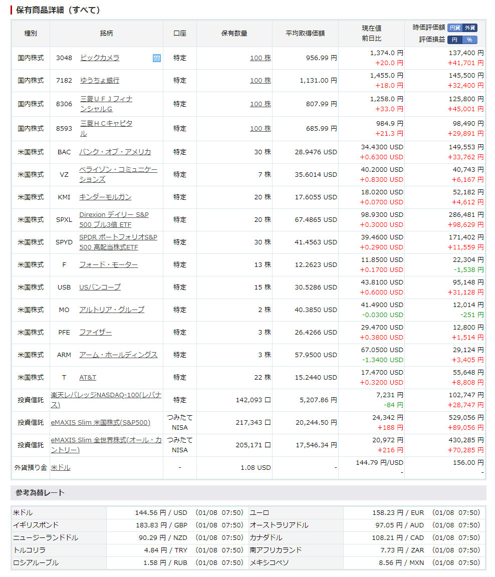特定口座で保有している日本の個別株も基本はそのままです。多分、今楽天にあるのはSBI証券のNISA口座には動かさないかも?買い増しはもちろんNISAで買いますが・・・。