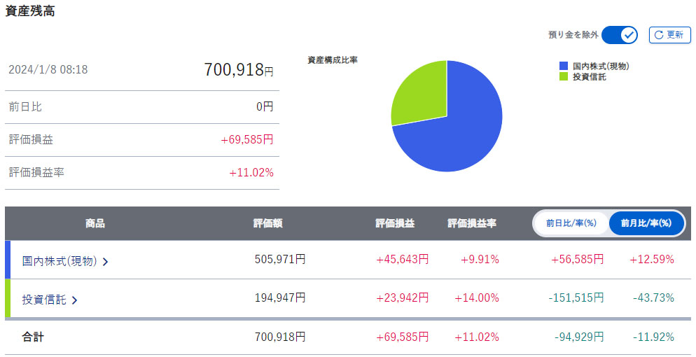 今年からNISA口座をSBI証券に移したのでメインはSBI証券になりました。