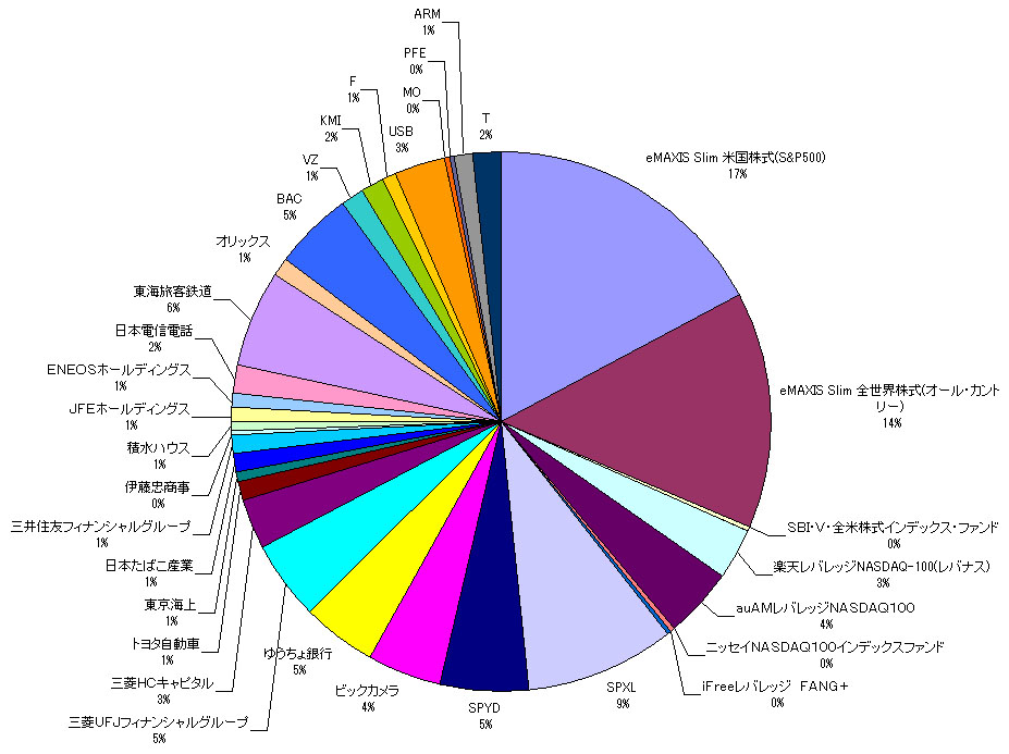 約19万円あった「SBI・V・全米」がなくなったので総資産は目減りしています。
