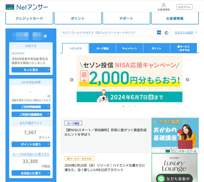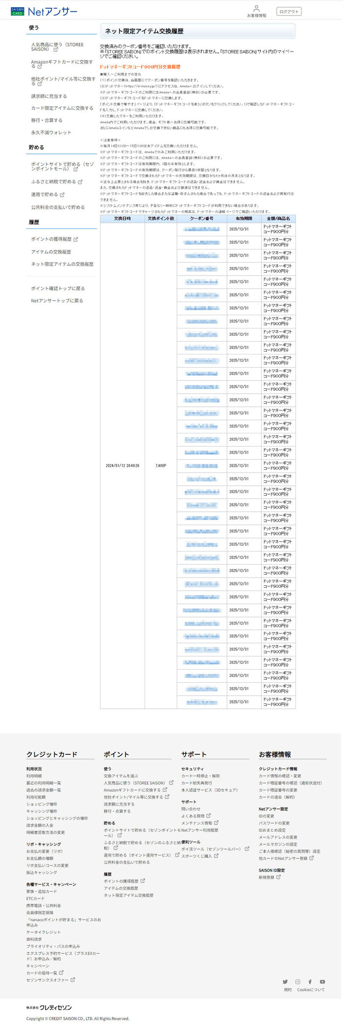 過去約20年間に及んで使わずに貯まっていたセゾンカードの永久不滅ポイントを現金化しました。