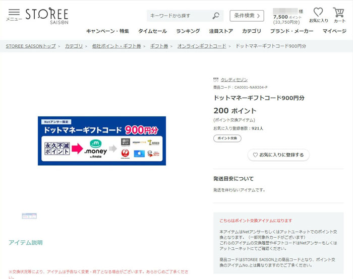 そしてこの「STOREE SAISON」ページへ(セゾンへのログイン必須)