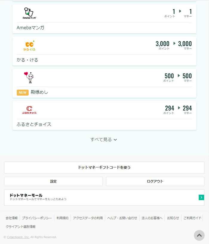 そもそも現金化できるとは知らず何か活用方法はないものかとネットで調べるとCYBERAGENTの「ドットマネー」経由で出来る事を知り実践しました。(ちなみに裏技とかではありません)