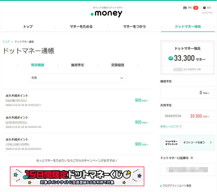 ↑このページを開いたままドットマネーのWEBサイトを開きます