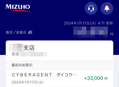 5営業日以内に指定の口座に33,000円が振り込まれます。