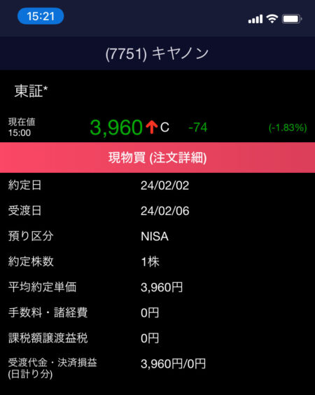 今日株価を見ると少し大きめ(-1.4%)に下げていたので1株だけ追加することにしました。