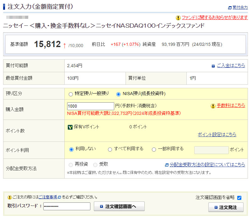 「ニッセイNASDAQ100インデックスファンド」は今年から新規の入金に関してはNISAの成長投資枠で運用しています。