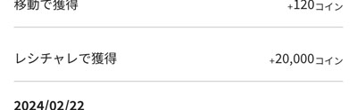 僅か1日(翌日の夕方)でコインが反映されました。これで1回分のドットマネーに交換可能な33,000コインを突破しました。現在、他のレシチャレもあるのですが今回はスルーしています。