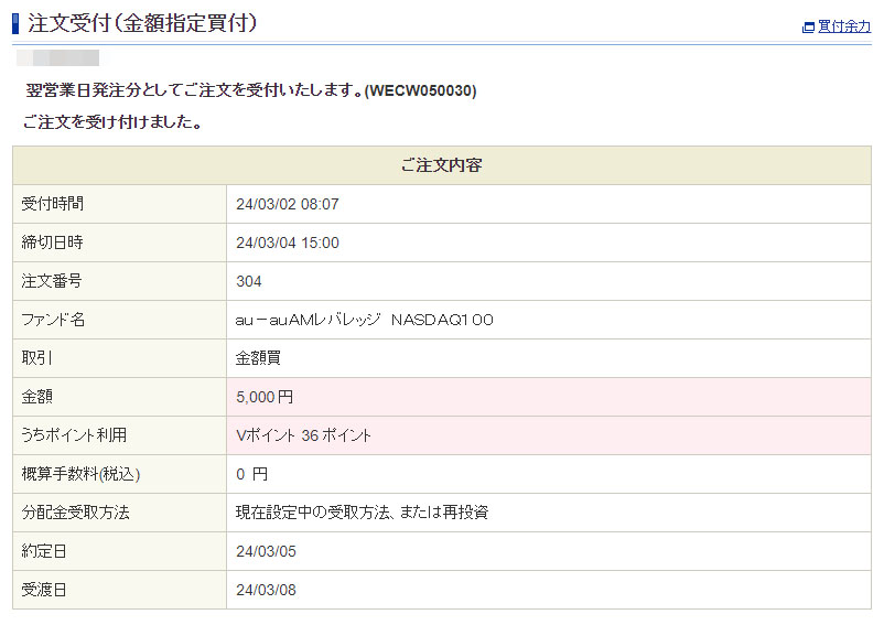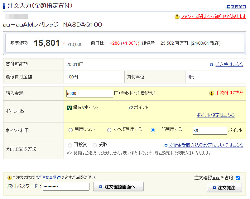 月初なので「auAMレバレッジNASDAQ100」には5,000円分になるように入れます。