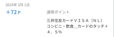 今回入ったのは「三井住友カードVISA(NL)コンビニ・飲食_カードのタッチ+4.5%」分です。