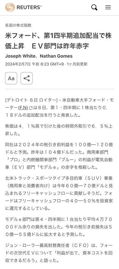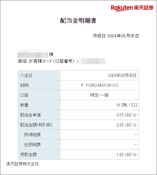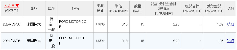 ファイザーと同じくしてフォードからも配当が入りました。