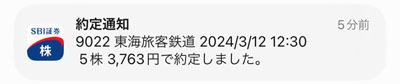 ヤフオクの売上が入金されましたので予定通り「JR東海」を追加で買います。