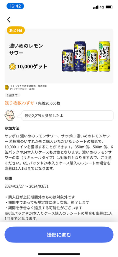 この「レシチャレ」は帰宅途中に気が付いて途中で購入してその場で撮影して応募しました。帰宅して確認すると終わっていたので応募期間は僅か数時間だったと思われます。
