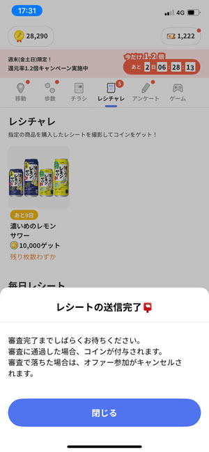 これと「宝箱」を合わせると220円で15,000コイン(約150円分)ゲットなので実質チューハイは約70円の計算ですw