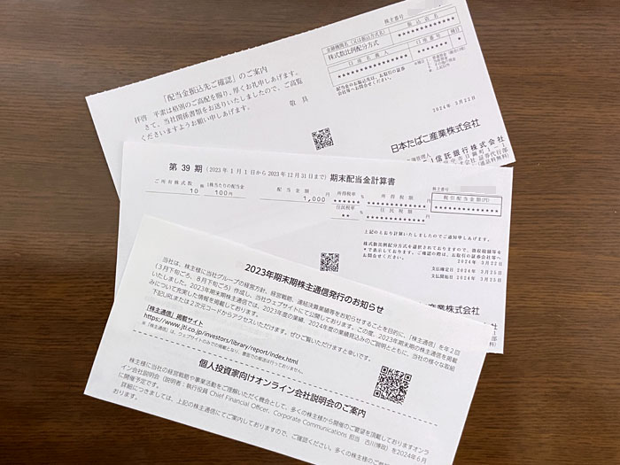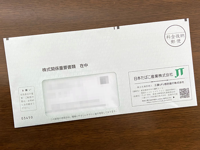 日本たばこ産業(2914)から株式関係重要書類が届きました。
