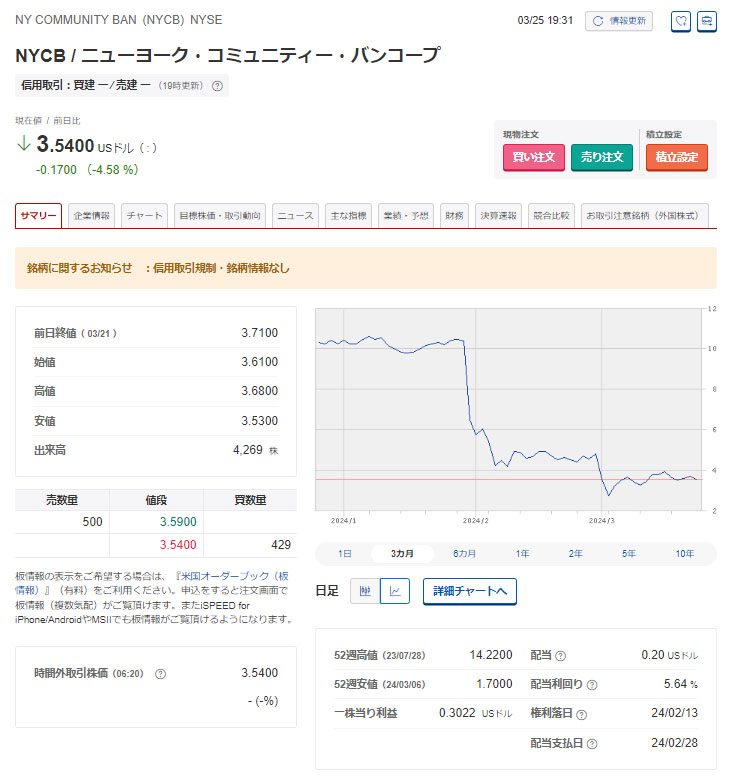 SPYDの配当金が入ったので折角なのでNYCBに再投資します。