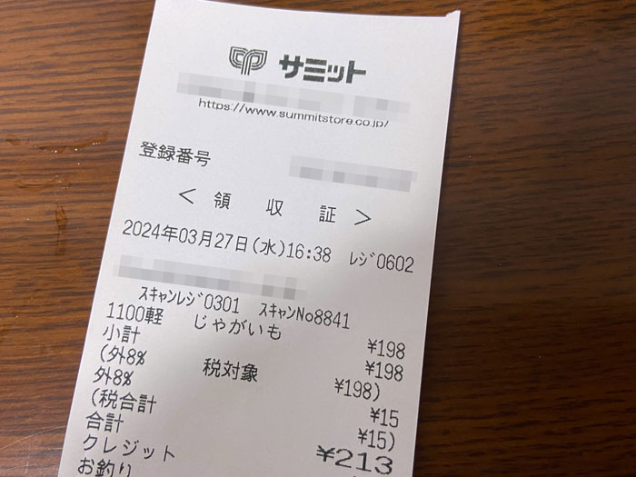 しかし・・・レシートには「じゃがいも」としかなくイマイチ不安になったので実際に送った画像には商品も写るようにして撮りました。