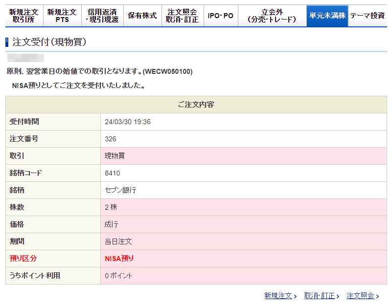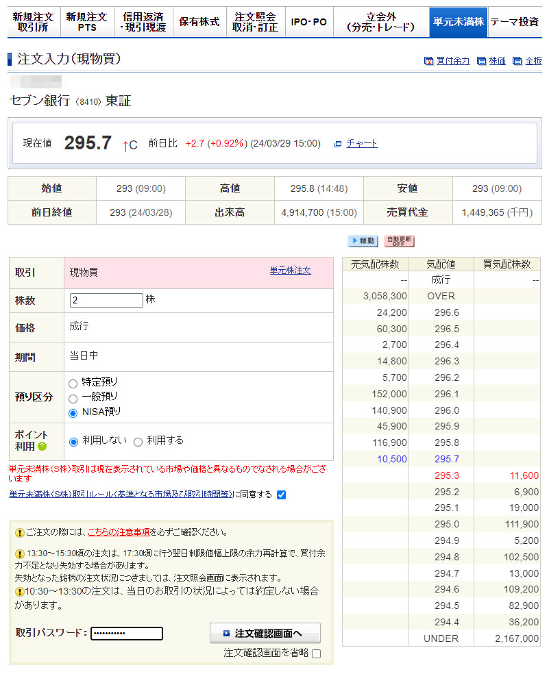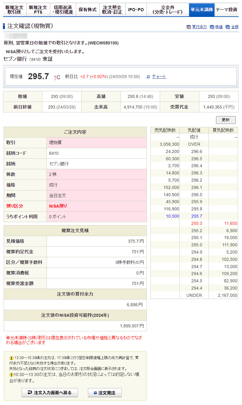 セブン銀行(8410)を2株購入|2024.4.1
