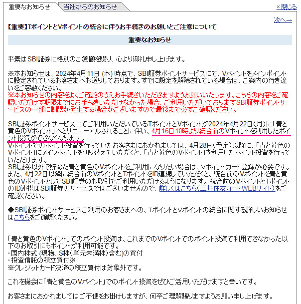 と思ったのですが、現在「Vポイント」と「Tポイント」をシステム的に併合してるようで4月16日~ Vポイントを使っての投資が出来なくなっています。