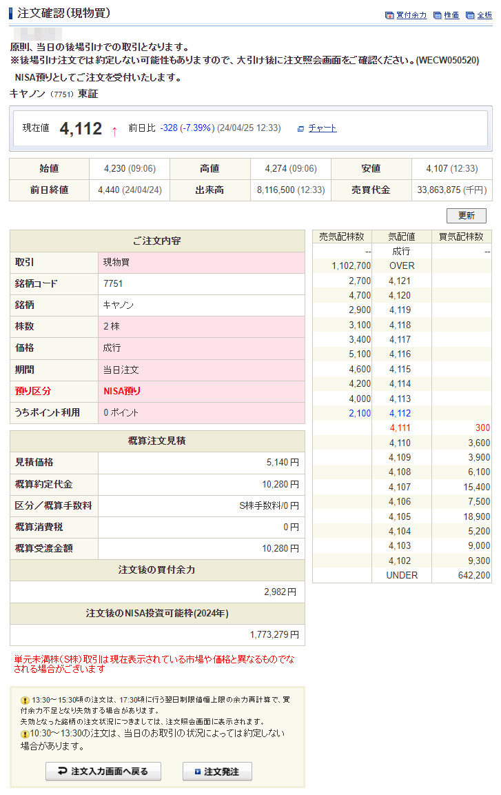 キヤノンは今年から買い始めたので全てNISAの成長投資枠で保有しています。