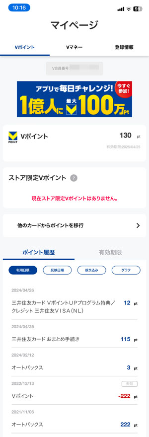 「青と黄色のVポイント」 イマイチよく分かっていませんが・・・。 スマホでTポイントとVポイントを統合したら、以前オートバックスで付与されたTポイント分3ポイントが追加されていました。(以前の222ポイントは失効) 慣れてくれば分かるようになるのかもしれませんが使い勝手はあまりよくないような気がします。この明細を開くのに毎回、以前のTポイントの16桁の番号を入力しなければならず煩しい。。。