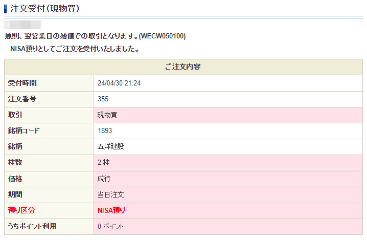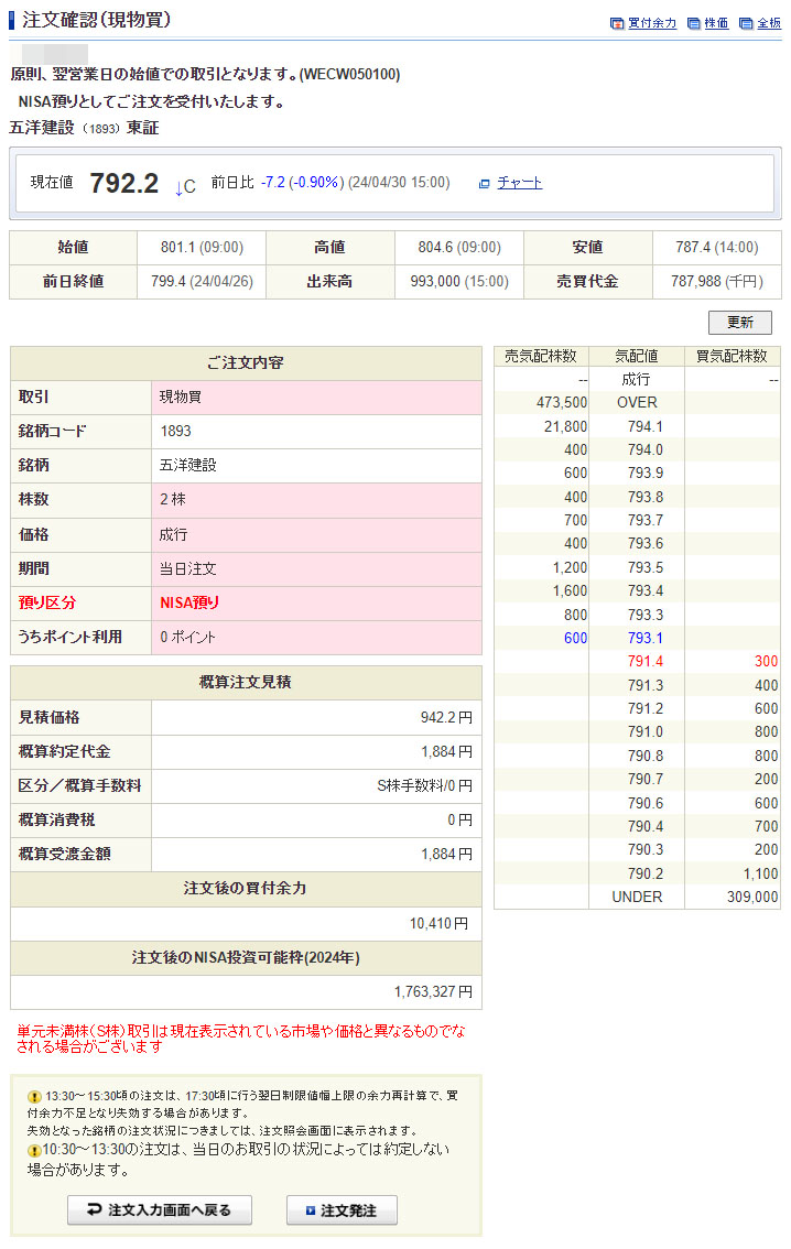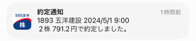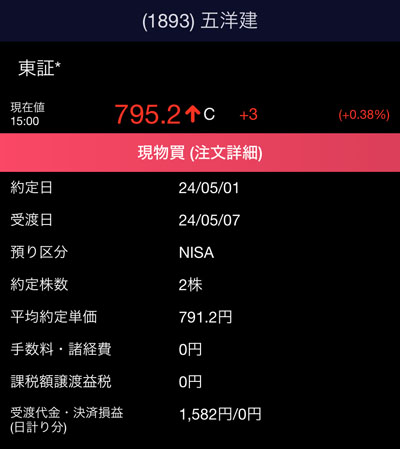 ・・・のでまずは「五洋建設」を2株。もちろん単元未満です。