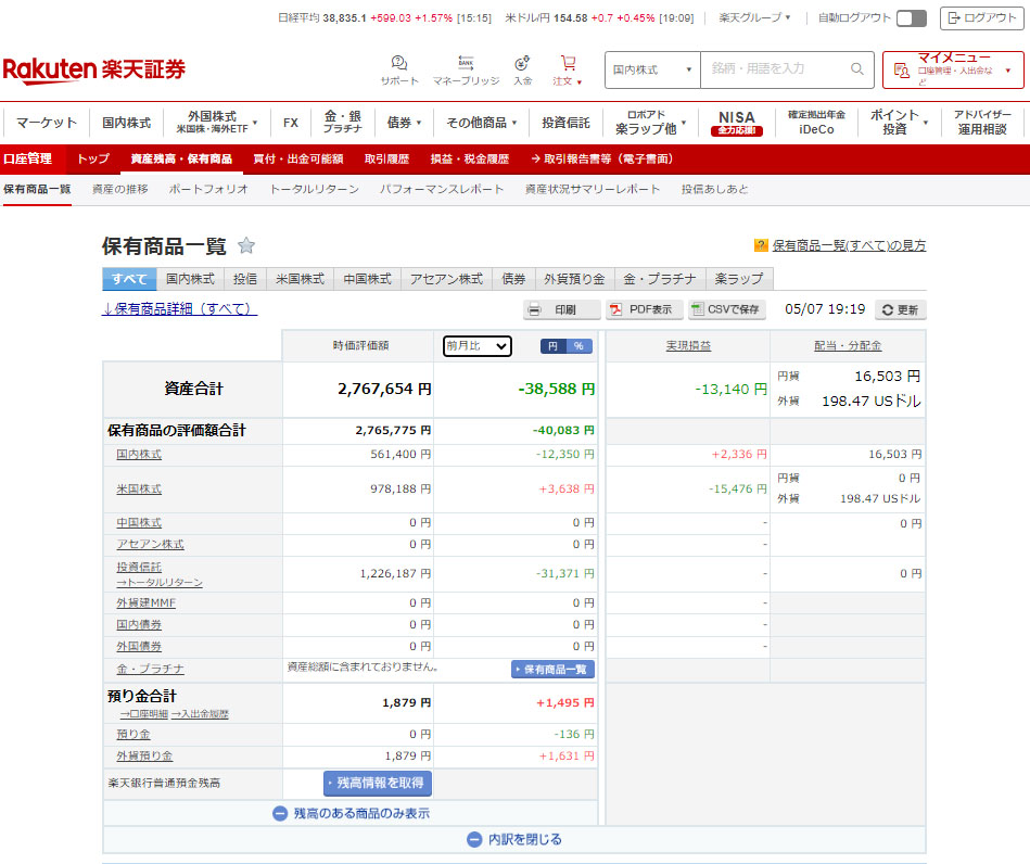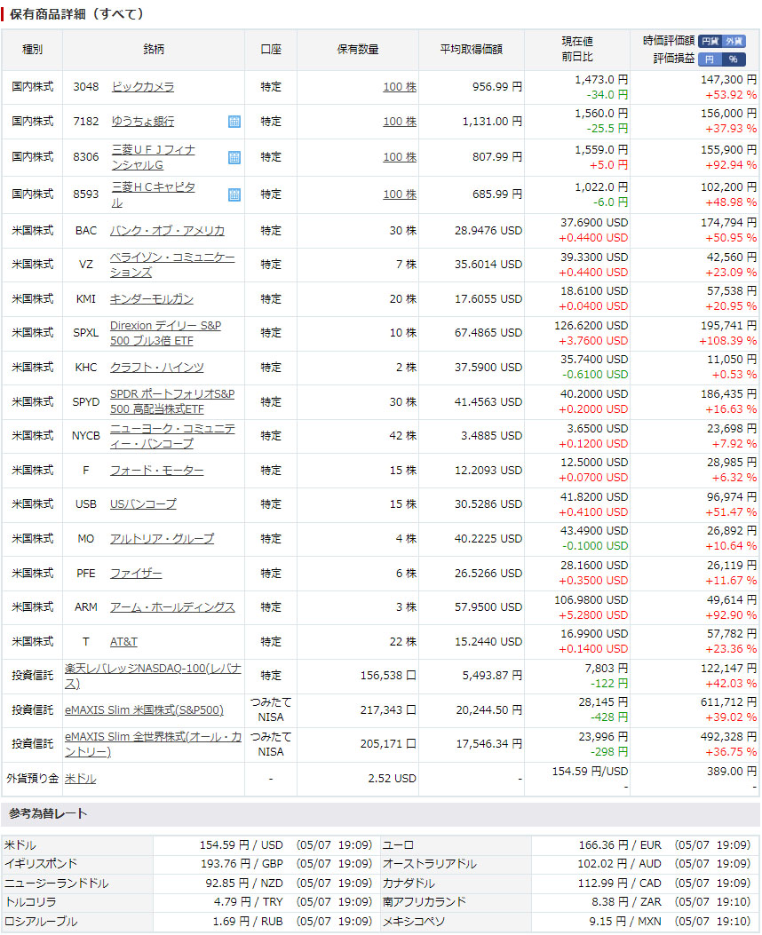 楽天証券口座は米国の個別しか動かないのであまり変わりません。