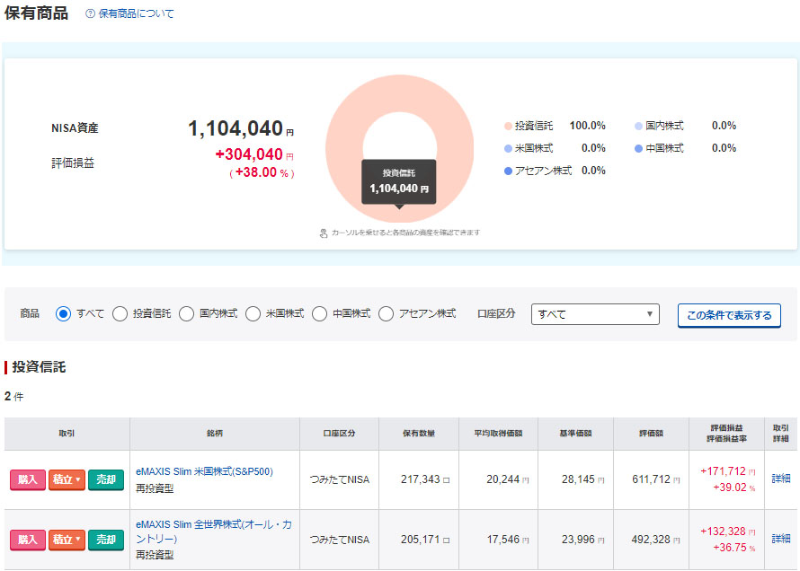 今月はGWを挟んでいたので今日、5月分のNISAつみたて投資枠が約定しました。