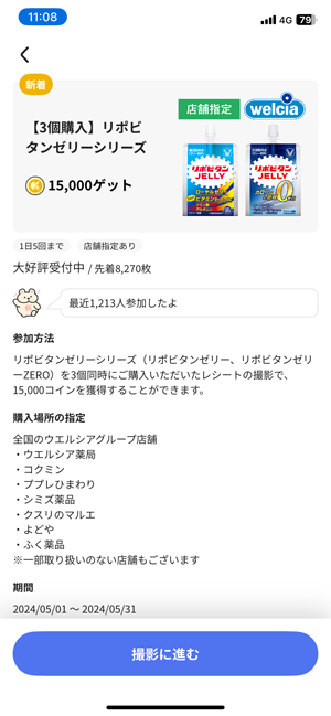クラシルリワードのレシチャレ㉑ そしてもう一つ・・・かどやのごま油とほぼ同時期に開催していた「リポジトリ ゼリーシリーズ」です。こちらは曲者で “Weicia” での購入が義務付けられた企画ものです。 1回の応募で15,000コインですが3個同時購入が必須要件です。 3個で534円でした。ん???-60円って?軽減税率? コスパ的には微妙な感じですがw 無事ゲットです!