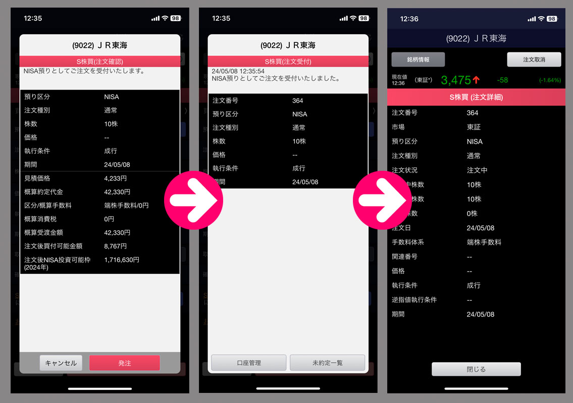 お昼休みに注文を入れたので今日の後場引けの株価で約定します。