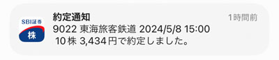 昼から更に下げて3,434円で約定しました。陸運は全般的に下げていました。この円安でインバウントもあるのになぜ下げるのか???よく分かっていませんが「JR東海」は単元(しかも早めにw)目指しているので最優先で購入。今日は「三菱商事」も4%下げていたので迷いましたが。。。