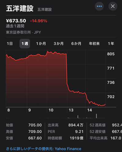 気分よく昼休みを迎え株価を再チェック!すると五洋建設が昨日からさらに4%以上下げていますwww 2番底???まぁ~これは普通にナンピンでしょ?予告もしてましたしwww