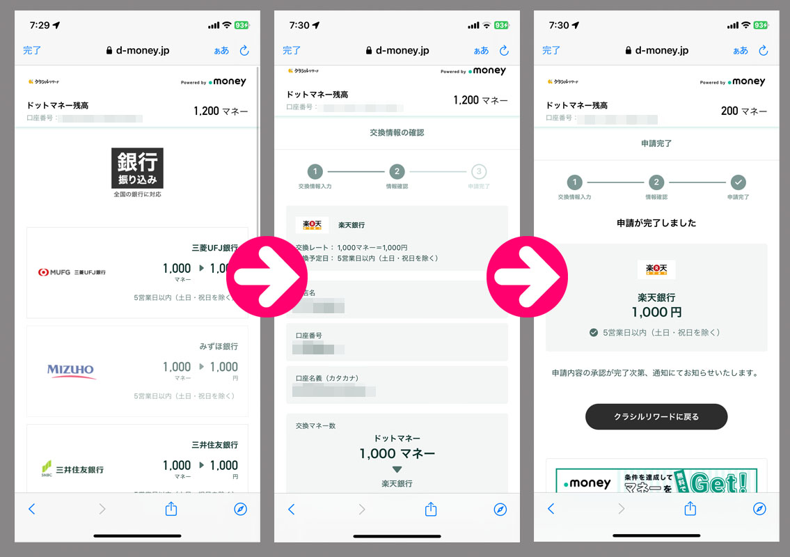 そして今度はドットマネー(.money)で銀行振り込みの手続きをして換金の流れです。