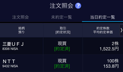 結局「NTT」と「三菱UFJフィナンシャルグループ」を買いました。