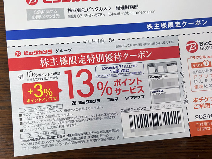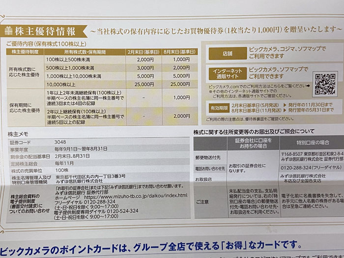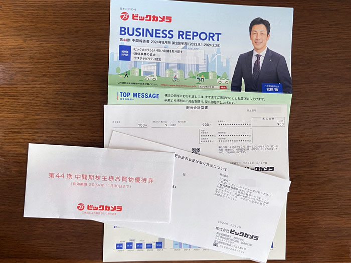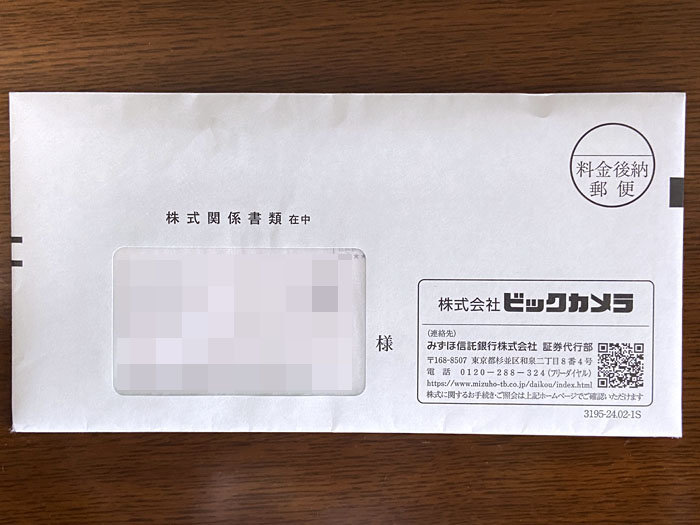 先日、配当があった「ビックカメラ」から『株式関係書類』が届きました。