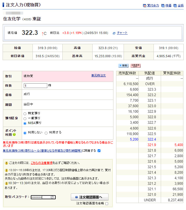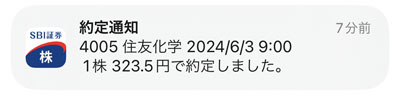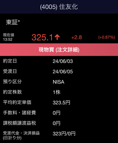 配当が入ったので「住友化学」を1株追加で購入します。