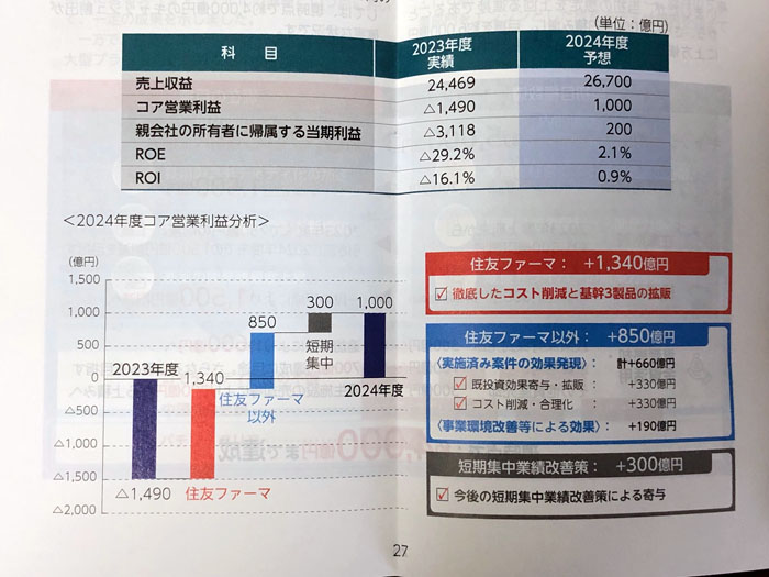 2023年度は全て減益(マイナス)・・・2024年度予想は黒字化のようですが
