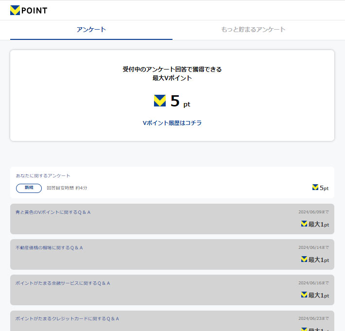 私の場合は「あなたに関するアンケート」5ptが未回答となっていたのでクリック!