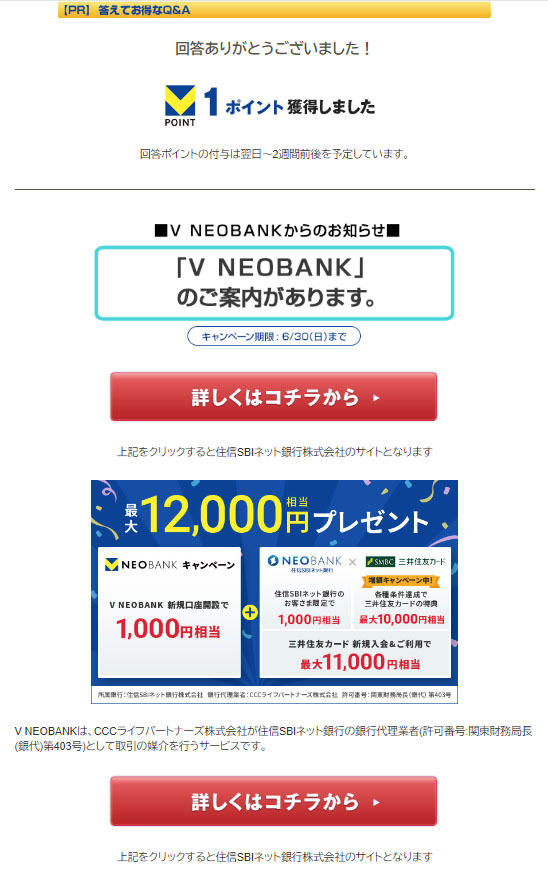 この【Vポイント】Q&Aメール