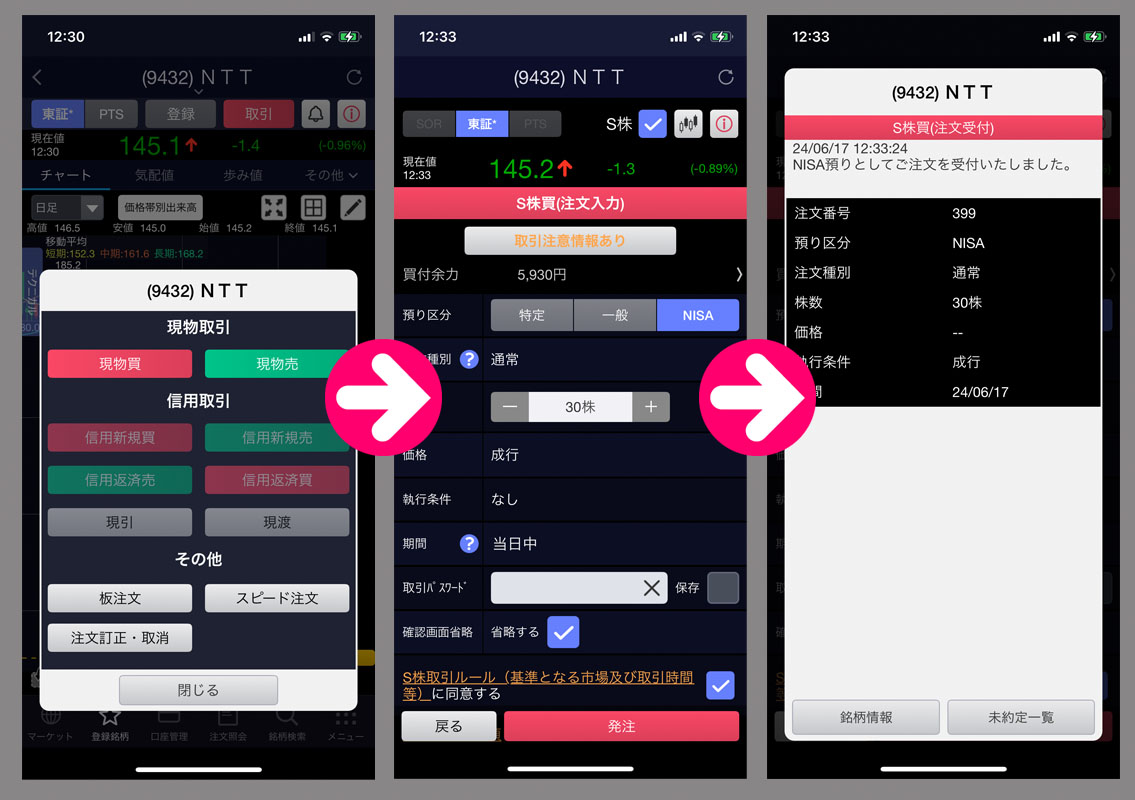 ホントは200株とか買いたいのですが(以下略)。NISA口座で単元未満なので成行です。