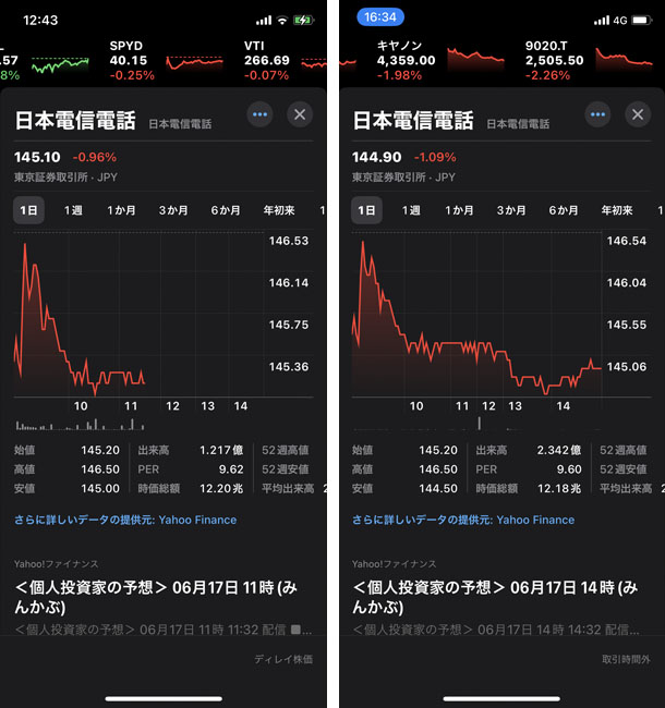 マジで下げ止まらないNTT。今日も追加で30株買いました。