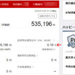 ヤフオクの売上金を楽天銀行口座に移してみると残高が80万になっていました。って事で余剰資金をかき集めて何とか100万に! これでハッピープログラムはVIPステージに! 個人的に大したメリットは無いのですがATMの無料回数が月2回が5回になりました。 楽天ポイント3倍ってのが何のことだか分かりません。 金利は変わらずの年0.10%です。300万はどう考えてもい … 続きを読む