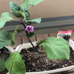 4月27日に植えた「なす」に花が咲きました。 こちらは「とげなし中長なす」です。 一応は順調なのかな?まぁ去年も花は咲いたのですが。。。 今年は水やりを慎重にしています。葉が萎れてきたらたっぷりと・・・。